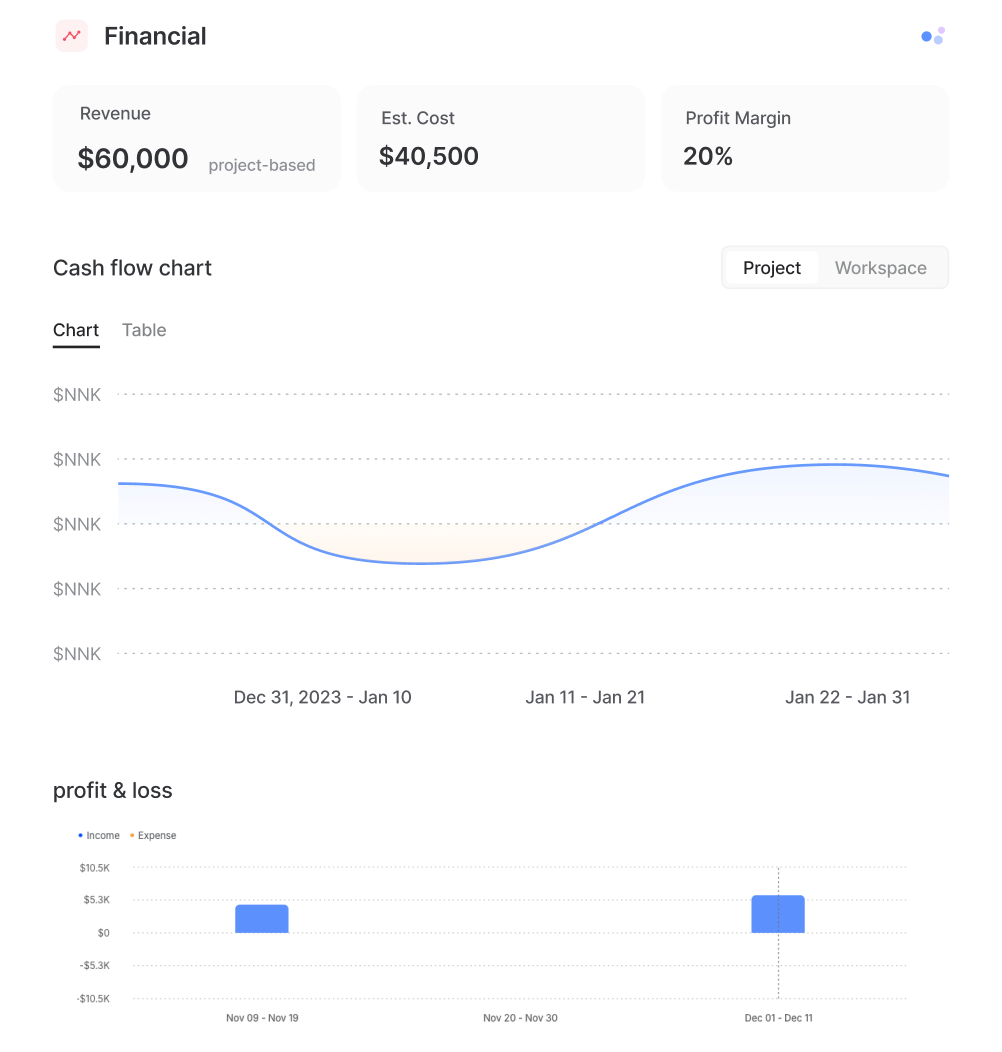 Pro tip: Make sure to track your project burn rate weekly throughout the project lifecycle. When you spot budget deviations early, you can make micro-adjustments rather than facing major overruns that require difficult client conversations and maintain positive cashflow